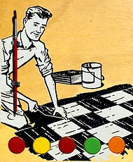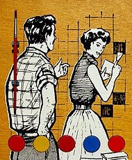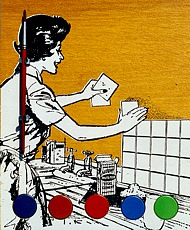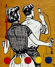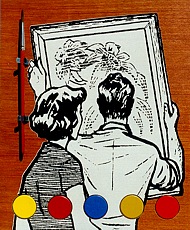 "Do It Yourself" silkscreen on wood, painttablets, brush / zeefdruk op hout, verfnapjes, kwastje edition 24 6 x (29 x 24 x 4,5) cm.