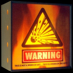 and profession. The light of the signs flashes irregularly. Drie lichtbakjes met een teken, ieder teken met een humoristische referentie naar mijn naam en beroep. Het licht in het bakje flikkert onregelmatig. |