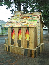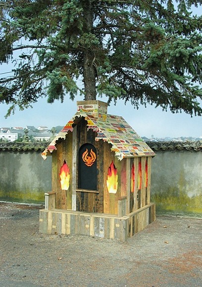 the trunk of a tree I built a house of discarded wood. The trunk raises