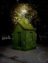 The lamp-post is rising out of the chimney. During the night when the light is on, the sculpture looks surrealistic and mysterious. The artificial material and the electric light of the lamp-post is a metaphor for the theme: The Municipal Landscape.